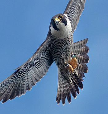 Today, laws protect raptors from such persecution in North America, and human efforts have even reestablished species that were once on the verge of extinction. The Peregrine Falcon, for example, nearly died out in the contiguous United States in the mid-twentieth century. The widespread use of DDT after World War II caused falcons (which ate birds that had eaten poisoned insects) to lay thin-shelled eggs that often cracked during incubation. Banning DDT as well as breeding and releasing captive-reared falcons back to the wild brought the species back from the brink of extinction.