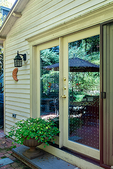 Helping birds see glass as a barrier is also a critical part of the solution. Some glass is manufactured with fritting or acid etching—dots, stripes, or other designs added to the outside of the glass that reduce its reflectivity and transparency and make it easier to see that the glass is a solid barrier. Most glass lacks fritting or acid etching, but there are other ways to make windows a more obvious barrier to our feathered friends. Adding screens to the outside of a window both breaks up reflections and provides a softer impact; if a bird flies into the window, it will hit the screen first and will be less likely to be injured. Window-safe markers or paints can be used to add decorations—dots, lines, or an entire mural—to the outside of a window. Care must be taken to cover all areas of the glass, leaving no more than a two-inch gap between items, vertically or horizontally. This prevents the smallest birds from attempting to zip through an apparent gap. Since Ruby-throated Hummingbirds are highly susceptible to window strikes, such placement can go a long way toward protecting them and other small species.