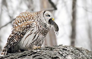 Most animals can expand or contract the pupils of their eyes to adjust for different lighting conditions. Owls can do this to an extraordinary degree. It is not true that all owls hunt only at night. Both the Snowy Owl and the Short-eared Owl are diurnal, or daytime, hunters and also hunt at night. They have to because they live in the Arctic where it’s always light in summer. The Barred Owl also sometimes hunts in daytime. Most owls, however, are crepuscular (active at dusk or dawn) or nocturnal.